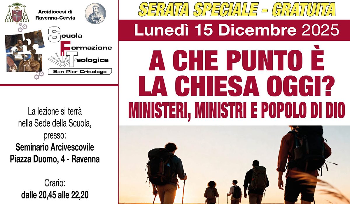 Gli incontri si svolgeranno presso il Seminario Arcivescovile Piazza Duomo, 4 – Ravenna alle…