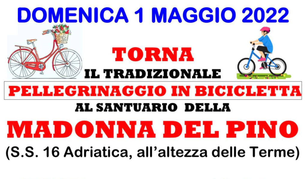 Domenica 1° maggio 2022 torna il tradizionale pellegrinaggio in bicicletta al Santuario della Madonna del Pino con partenza alle ore 10 da piazza Garibaldi a Cervia.