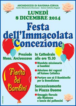 Lunedì 8 dicembre alle ore 15.30 nel Duomo di Ravenna, durante la tradizionale Festa dell’Immacolata Concezione che si concluderà con l’omaggio floreale alla statua della Madonna collocata in piazza, il nostro arcivescovo mons. Lorenzo Ghizzoni conferirà il mandato missionario ai bambini provenienti dalle parrocchie della Diocesi.