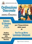 Sabato 12 ottobre 2019, presso la Basilica Cattedrale di Ravenna, Sua Ecc.za Mons. Lorenzo Ghizzoni celebrerà la S. Messa con l’Ordinazione Diaconale di Andrea Romagnoli