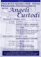 Chiesa dei S.S. Giovanni e Paolo – Ravenna Programma Festeggiamenti dei S.S. Angeli Custodi Martedì 1°ottobre 2019 ore 20.00 S. Rosario ore 20.30 Processione con la statua dell’Angelo per via Cura, via Oberdan, via Agnello Istorico e via P. Uccellini. Presterà servizio la “Banda musicale città di Ravenna”. Le famiglie sono invitate a partecipare e […]