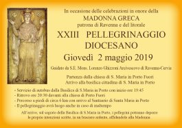 In occasione delle celebrazioni in onore della Madonna Greca patrona di Ravenna e del litorale XXIII Pellegrinaggio Diocesano Giovedì 2 maggio 2019 Guidato da mons. Lorenzo Ghizzoni, Arcivescovo di Ravenna-Cervia Partenza dalla chiesa di S. Maria in Porto Fuori Arrivo alla basilica cittadina di S. Maria in Porto Servizio di Autobus dalla Basilica di S. […]
