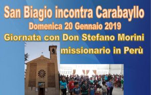 Programma: Ore 10.00 Santa Messa celebrata da don Stefano Morini Ore 12.30 Pranzo. Il ricavato andrà alla missione di Carabayllo Ore 15.00 Incontro con don Stefano Morini Per il pranzo prenotarsi entro mercoledì 16 gennaio ai seguenti numeri: Brunella: 328.6865411 Luciana: 338.1240548