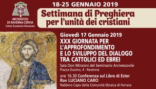 Giovedì 17 Gennaio 2019 XXX Giornata per l’approfondimento e lo sviluppo del dialogo tra Cattolici ed Ebrei Sala Don Minzoni del Seminario Arcivescovile Piazza Duomo, 4 – Ravenna ore 16.30 Conferenza sul Libro di Ester Rav Luciano Caro Rabbino Capo della Comunità Ebraica di Ferrara Venerdì 18 Gennaio 2019 Parrocchia San Francesco – Piazza […]