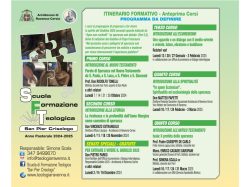 Scuola di Formazione Teologica San Pier Crisologo Anno Pastorale 2024-2025 Le lezioni si terranno nella Sede della Scuola, presso: Seminario Arcivescovile Piazza Duomo, 4 – Ravenna Orario delle lezioni: dalle 20,45 alle 22,20 L’anteprima del programma sul volantino
