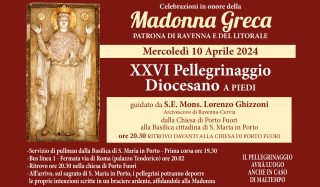 Celebrazioni in onore della Madonna Greca, Patrona di Ravenna e del litorale Mercoledì 10 Aprile 2024 XXVI° Pellegrinaggio Diocesano a piedi guidato da S.E. Mons. Lorenzo Ghizzoni, Arcivescovo di Ravenna-Cervia dalla Chiesa di Porto Fuori alla Basilica cittadina di S. Maria in Porto ore 20.30 Ritrovo davanti alla chiesa di Porto Fuori – Servizio di pullman dalla Basilica di […]