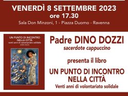 Venerdì 8 settembre 2023 ore 17.30 Sala Don Minzoni, Piazza Duomo 1 – Ravenna Padre Dino Dozzi sacerdote cappuccino presenta il libro “Un punto di incontro nella città” Venti anni di volontariato solidale Info e dettagli sul volantino