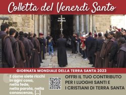 La “Colletta per la Terra Santa”, conosciuta anche come “Collecta pro Locis Sanctis”, nasce dalla volontà dei papi di mantenere forte il legame tra tutti i Cristiani del mondo e i Luoghi Santi. Le offerte raccolte dalle parrocchie e dai Vescovi vengono trasmesse dai Commissari di Terra Santa alla Custodia di Terra Santa che verranno […]
