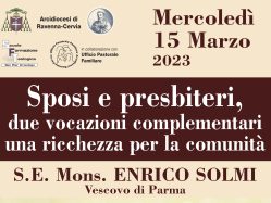Mercoledì 15 Marzo alle 20.45, Mons. Solmi “Sposi e presbiteri, due vocazioni complementari, una ricchezza per la comunità”