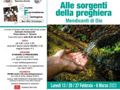 Lunedì 13, 20, 27 febbraio, 6 marzo 2023 “Alle sorgenti della preghiera. Mendicanti di Dio” con don Matteo Papetti, direttore Pastorale Giovanile e Vocazionale. Che cosa significa pregare? Quanto è importante? Come si prega? …questi è altri interrogativi in un piccolo e prezioso percorso di spiritualità. Per info e iscrizioni: www.teologiaravenna.it info@teologiaravenna.it