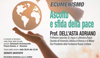 Ecumenismo e Dialogo interreligioso Lunedì 9 gennaio 2023 Ascolto e sfida della pace – prof. Dell’Asta Adriano Info e dettagli sul volntino
