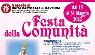Salesiani, Unità pastorale di Ravenna Parrocchia di Ss. Simone e Giuda Parrocchia di San Pier Damiano Festa della Comunità da domenica 15 a martedì 31 maggio 2022 Programma e info sul volantino