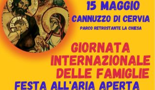 Domenica 15 maggio 2022 dalle 14.30 Cannuzzo di Cervia Parco retrostante la chiesa Giornata Internazionale delle Famiglie Festa all’aria aperta con musica, giochi e ristorazione Il programma sul volantino