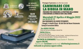 Prosegue il percorso per conoscere la struttura della Bibbia e raccontare la storia di Dio e dell’uomo “Camminare con la Bibbia in mano” Due serate alla Scuola di Formazione Teologica Mercoledì 27 aprile e 4 maggio 2022 dalle 20.30 alle 22.15 Una panoramica sul Nuovo Testamento I Vangeli: 4 ritratti di Gesù Gli altri libri […]