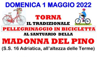 Domenica 1° maggio 2022 torna il tradizionale pellegrinaggio in bicicletta al Santuario della Madonna del Pino con partenza alle ore 10 da piazza Garibaldi a Cervia. Tutte le informazioni sul volantino