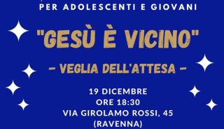 Domenica 19 dicembre alle ore 18:30 presso la Fraternità Cena Domini in via Girolamo Rossi potrai partecipare alla veglia per giovani e adolescenti in preparazione al Santo Natale! Info e adesioni al 3455830895 – 0544255120 giovaniravenna