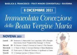 Presso la Basilica di San Francesco, a partire da lunedì 29 novembre 2021 inizierà la Novena dell’Immacolata Concezione. Il programma completo sul volantino