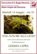 Gemma Capra Calabresi a San Biagio: ‘Dal Dolore alla Gioia’ Parrocchia di S. Biagio – Ravenna Settimana di celebrazioni in onore della Beata Vergine del Soccorso Martedì 14 maggio – ore 21: ‘Dal Dolore alla Gioia’ valori umani alimentati dalla fede Testimonianza di Gemma Capra, vedova del commissario Luigi Calabresi, ucciso a Milano nel […]