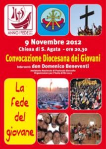Convocazione Diocesana dei Giovani Dal ‘RisVeglio Duemila’ N. 40/2012 La sera di venerdì 9 novembre alle 20.30 nella Chiesa di Sant’Agata in via Mazzini a Ravenna verrà celebrata la ‘Convocazione Diocesana di Pastorale Giovanile’ come momento di incontro importante per i giovani della nostra Diocesi, in ordine all’Anno della Fede. Presiederà questo appuntamento Don Domenico […]