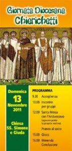 Giornata Diocesana Chierichetti Dal ‘RisVeglio Duemila’ N. 41/2011 Domenica 13 novembre 2011 Chiesa dei SS. Simone e Giuda Programma 9.30 Accoglienza 10.00 Incontro per gruppi 12.00 Santa Messa con l’Arcivescovo (ognuno porta la propria vestina) Pranzo al sacco 15.00 Gioco 16.00 Merenda Conclusione
