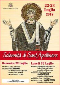 Calendario Pastorale: Luglio 2018 Domenica 22 luglio: Celebrazioni in onore di Sant’Apollinare, patrono della diocesi di Ravenna-Cervia e della Regione Emilia Romagna. Ore 20.00 Pellegrinaggio Diocesano a piedi dalla cattedrale a Sant’Apollinare in Classe Lunedì 23 luglio, Sant’Apollinare: Ore 10.30: Santa Messa presieduta dall’Arcivescovo in cattedrale. Ore 18.00: Vespri in Sant’Apollinare in Classe. Ore […]