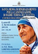 S. Messa di ringraziamento per la canonizzazione di Madre Teresa di Calcutta