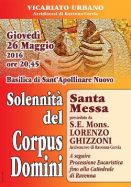 Corpus Domini Ravenna, 26 maggio 2016 L’Eucaristia: fonte di carità e di annuncio Il Vangelo di Luca (9,11-17) pone il miracolo della moltiplicazione dei pani, descritto con linguaggio che richiama i gesti centrali della liturgia eucaristica, nel contesto della missione di Gesù e dei suoi dodici. Appena prima ci veniva raccontato che Gesù aveva […]