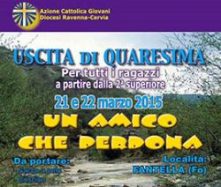 AC Giovani: Uscita di Quaresima Nelle giornate del 21 e 22 marzo, a Fantella, in provincia di Forlì, avrà luogo un ritiro spirituale indirizzato ai giovani delle scuole superiori. Il ritiro avrà come filo conduttore il tema della “Responsabilità”, passando attraverso l’importanza delle scelte, il senso del peccato, la misericordia di Dio, la […]