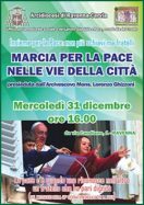 Il 31 dicembre la Marcia per la Pace Dal “RisVeglio Duemila” N. 47/2014 Mercoledì 31 dicembre, ultimo giorno dell’anno, dalle ore 16.00 alle ore 18.30, si svolgerà per le vie di Ravenna la marcia per la pace, organizzata dall’Archidiocesi di Ravenna-Cervia e presieduta dall’Arcivescovo Mons. Lorenzo Ghizzoni. La partenza sarà in […]