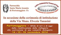 Portomaggiore e Mons. Tanasini Il 15 novembre sarà intitolata una strada all’ex parroco Dal “RisVeglio Duemila” N. 41/2014 In occasione della cerimonia di intitolazione della via Mons. Elvezio Tanasini a Portomaggiore si terranno una serie di incontri; ne pubblichiamo, in sintesi, il programma. Gli eventi sono promossi dalla parrocchia, da […]
