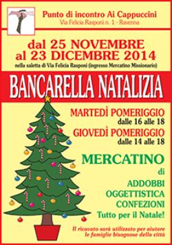 Sarà aperta dal 25 novembre al 23 dicembre nella sala di via Felicia Rasponi (ingresso mercatino missionario, Ravenna) una ricca bancarella di addobbi, luminarie, oggettistica e confezioni.