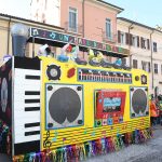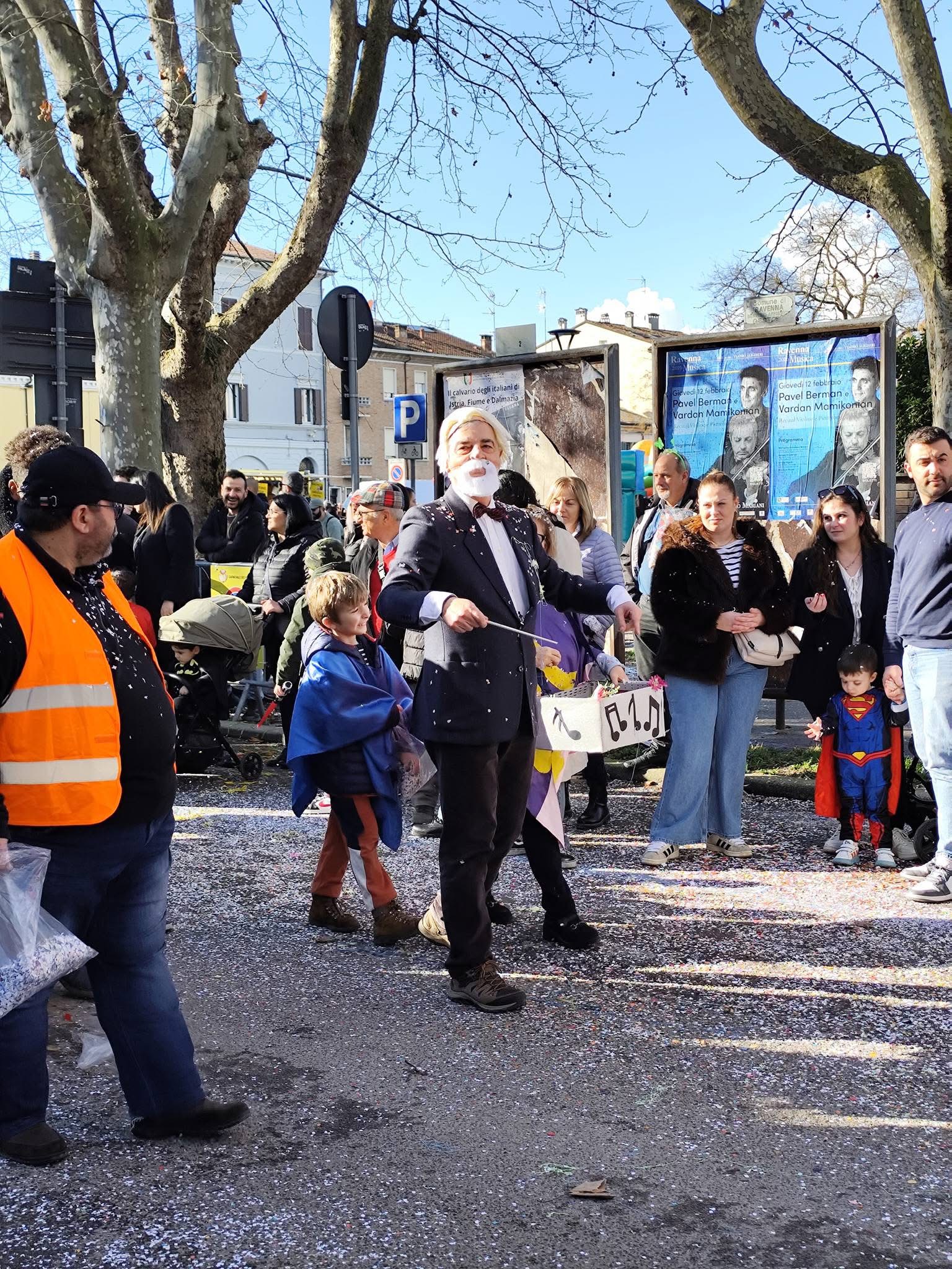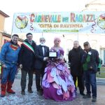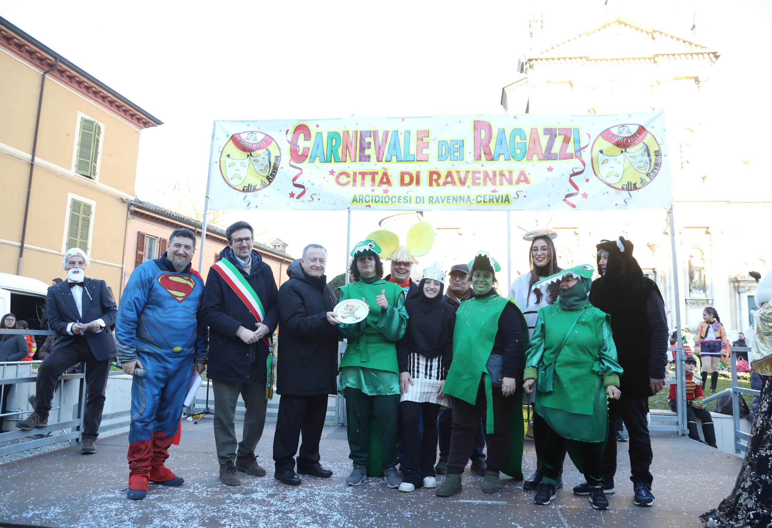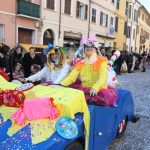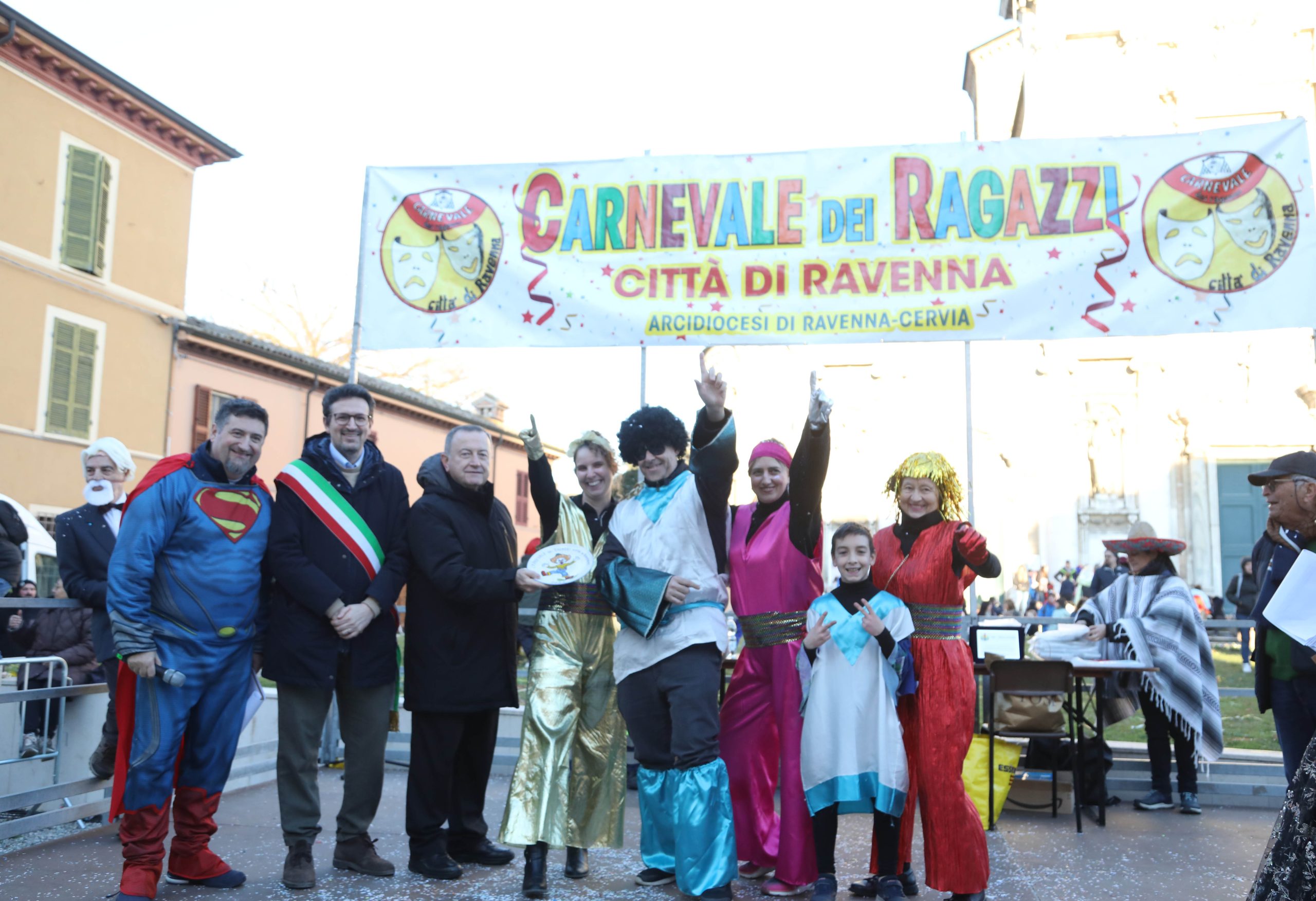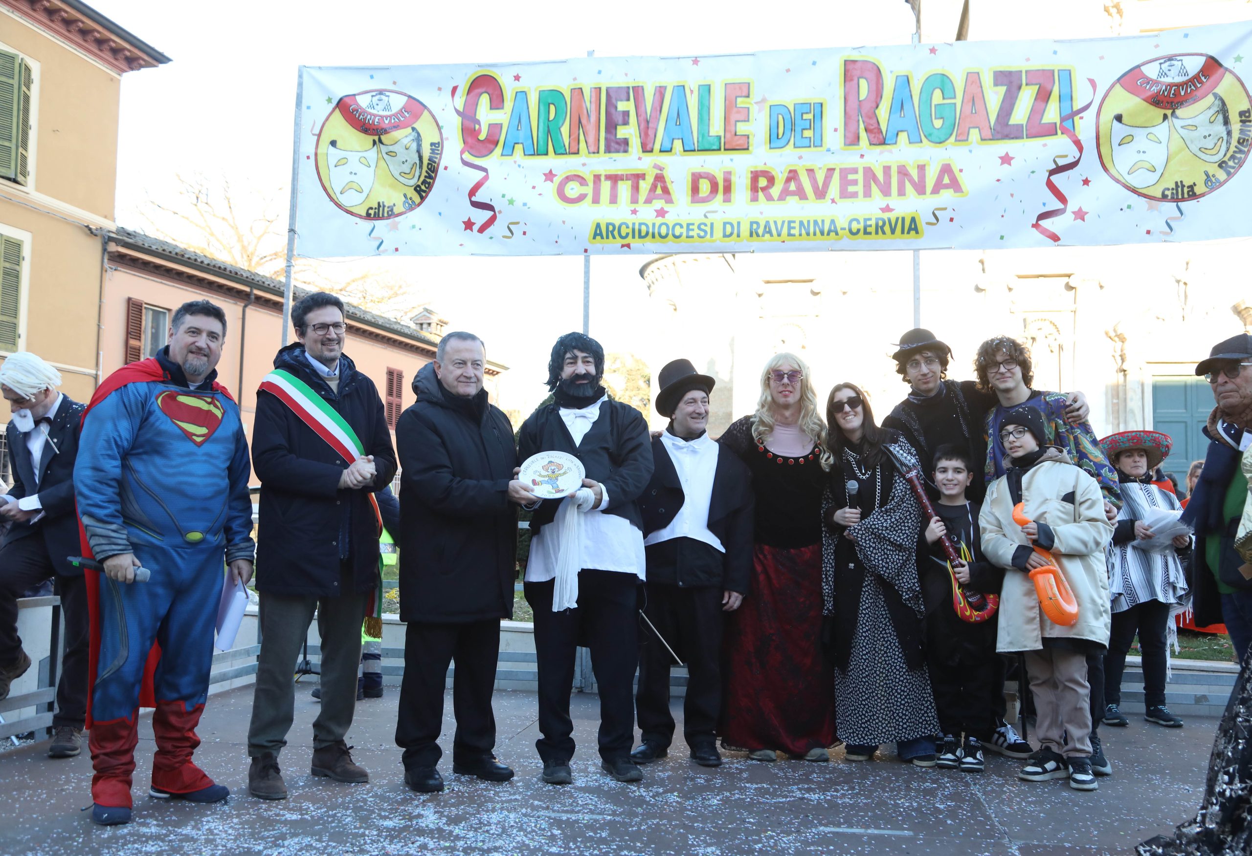15-02-2026-; ravenna via di roma sfilata carri di carnevale città di ravenna , parrocchie , vestiti , carri mascherati , diocesi - carnevale, vincitori parrocchia e caro di porto fuori , premio migliore maschera carlino roberta terragrossa di marina di ravenna , con vestito fata confetto