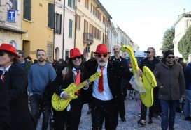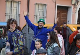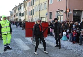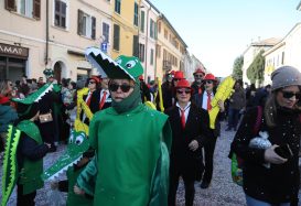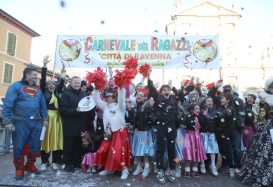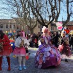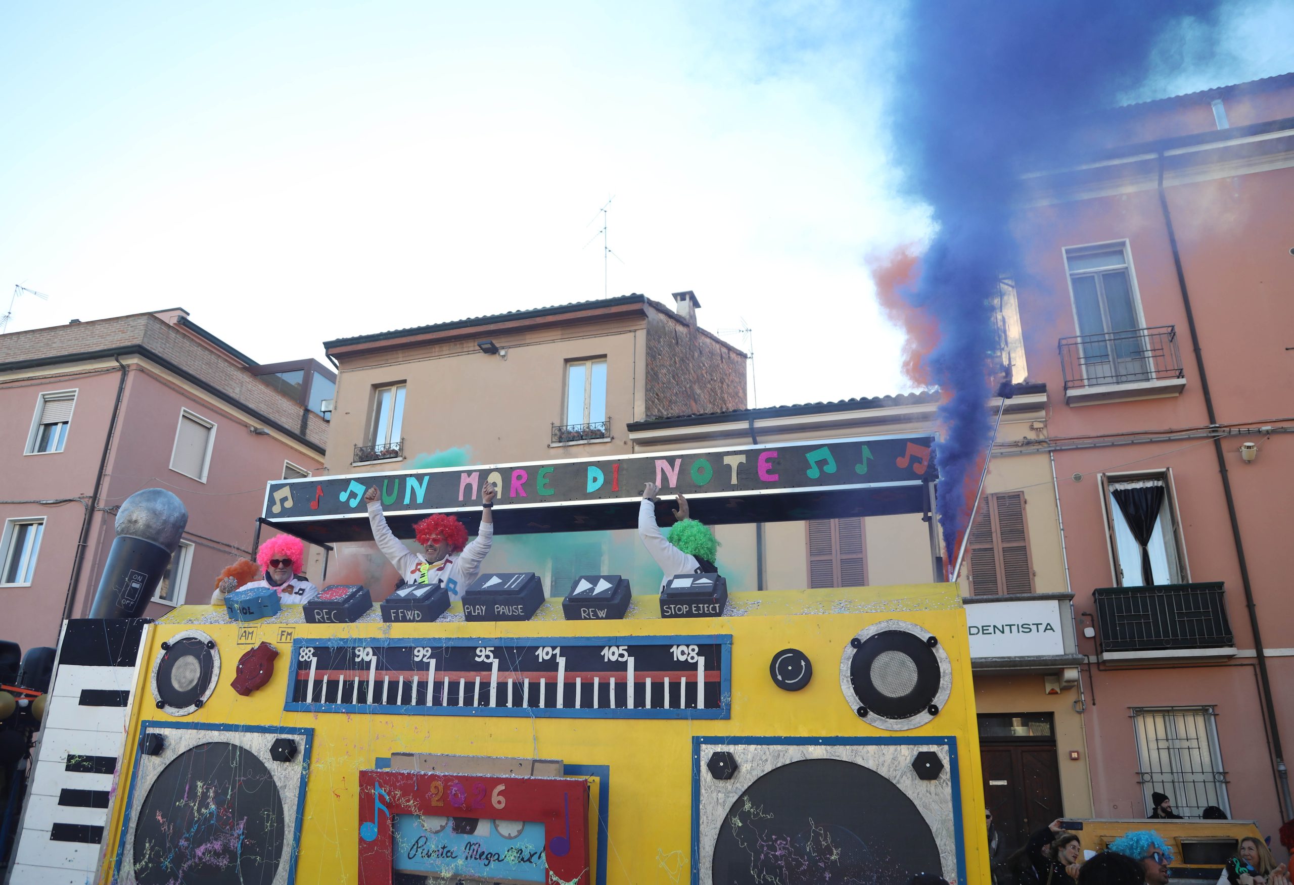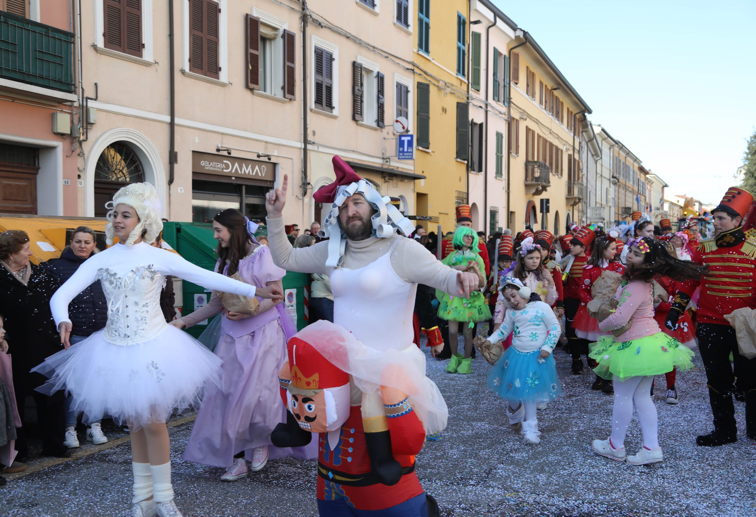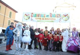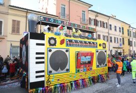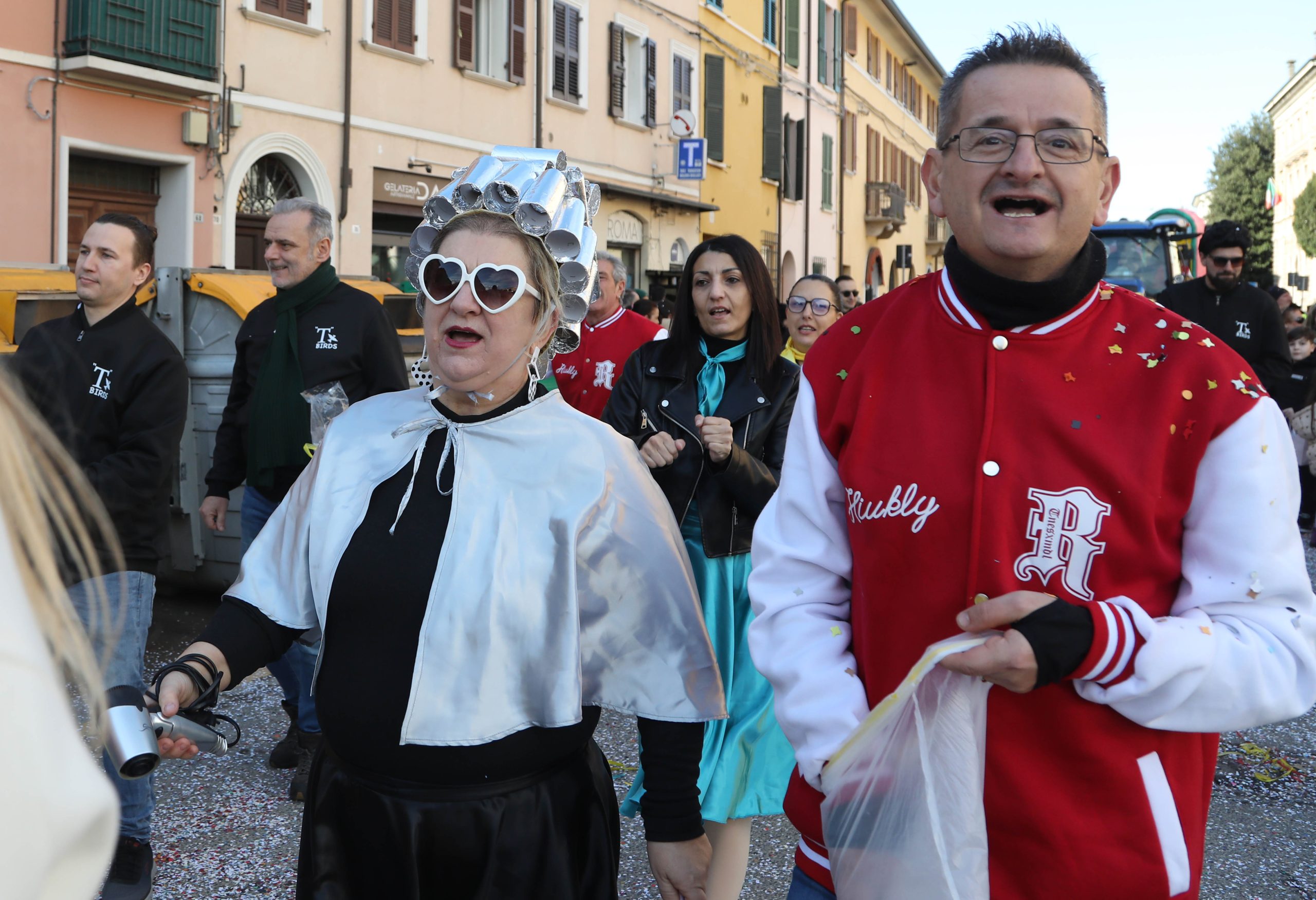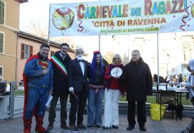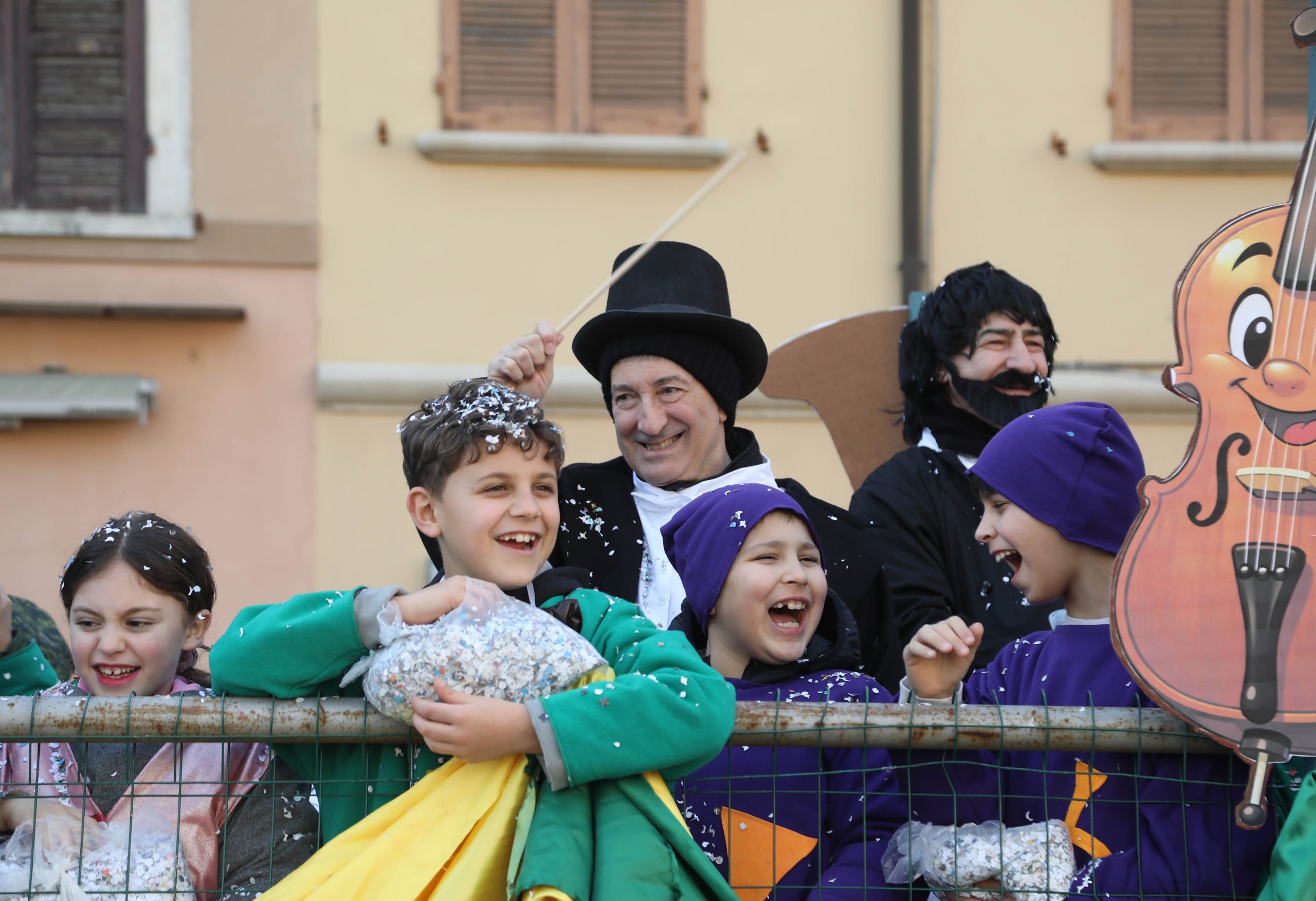 15-02-2026-; ravenna via di roma sfilata carri di carnevale città di ravenna , parrocchie , vestiti , carri mascherati , diocesi - carnevale, vincitori parrocchia e caro di porto fuori , premio migliore maschera carlino roberta terragrossa di marina di ravenna , con vestito fata confetto