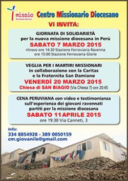 Ora questa opportunità è offerta anche alla nostra diocesi. Come sapete, infatti, quest’estate la Chiesa di Ravenna-Cervia aprirà una sua missione diocesana nella diocesi di Carabayllo, in Perù, nella periferia di Lima e precisamente in un barrio chiamato Santo Domingo. Questa missione incomincerà con un sacerdote e alcuni laici. Sì, proprio dei laici, perché questa è la missione della nostra diocesi e la diocesi è formata prevalentemente da laici. Credo che questo sia un dono che il Signore fa a tutta la nostra Chiesa, un momento di grazia per tutti. L’apertura di una missione diocesana è un evento che trova la sua radice nelle prime comunità cristiane, che mandavano alcuni fratelli e sorelle presso altre comunità.