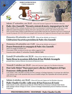Nell’occasione padre Claudio Cicillo, parroco di San Michele, illustrerà la nascita della Fraternità San Damiano (promotrice dell’evento), il percorso, le attività, gli incontri 2014-2015 del nuovo progetto del Convento dei Cappuccini che gli è stato affidato.