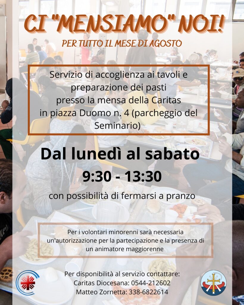 Presso il seminario di Ravenna, la Caritas diocesana aprirà una mensa per gli utenti. I volontari che desiderano dare una mano possono contattare il referente: