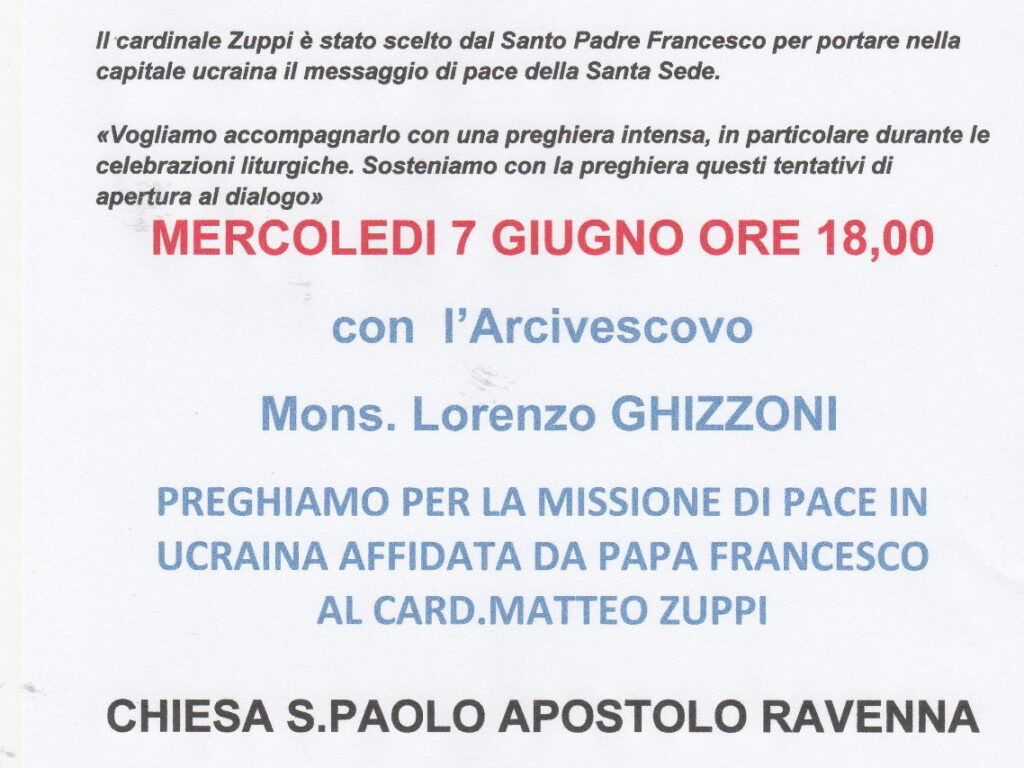 Preghiamo per la missione di Pace in Ucraina affidata al Card. Zuppi