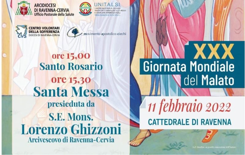 1 Dicembre 2021 admindiocesi 11 febbraio: Giornata mondiale del Malato in Cattedrale XXX° Giornata del Malato Cattedrale di Ravenna, 11 febbraio 2022 Ore 15.00 Santo Rosario Ore 15.30 Santa Messa presieduta da S.E. Mons. Lorenzo Ghizzoni Arcivescovo di Ravenna-Cervia FacebookTwitterLinkedinPinterestPrintEmailWhatsapp Volantino Messaggio di Papa Francesco per la 30° giornata del malato