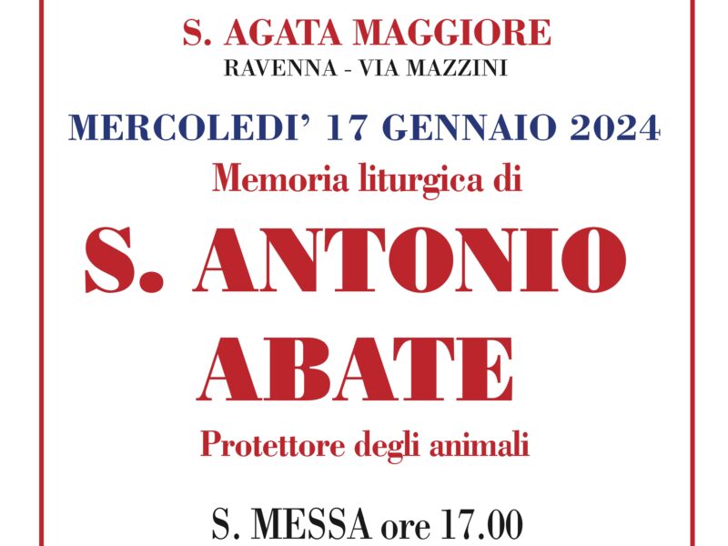 17 gennaio alle 17: Messa di S. Antonio Abate a S. Agata
