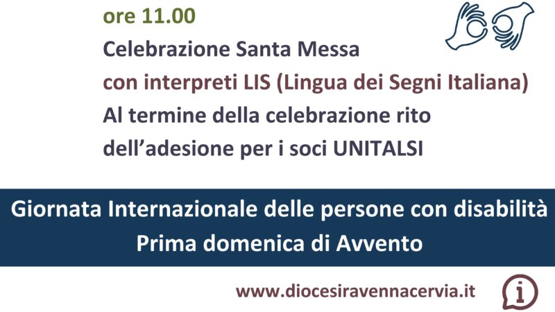 In occasione della la Giornata internazionale delle Persone con disabilità che si celebra il prossimo 3 dicembre, nella nostra Diocesi la Messa in Cattedrale domenica 1 dicembre alle 11.00