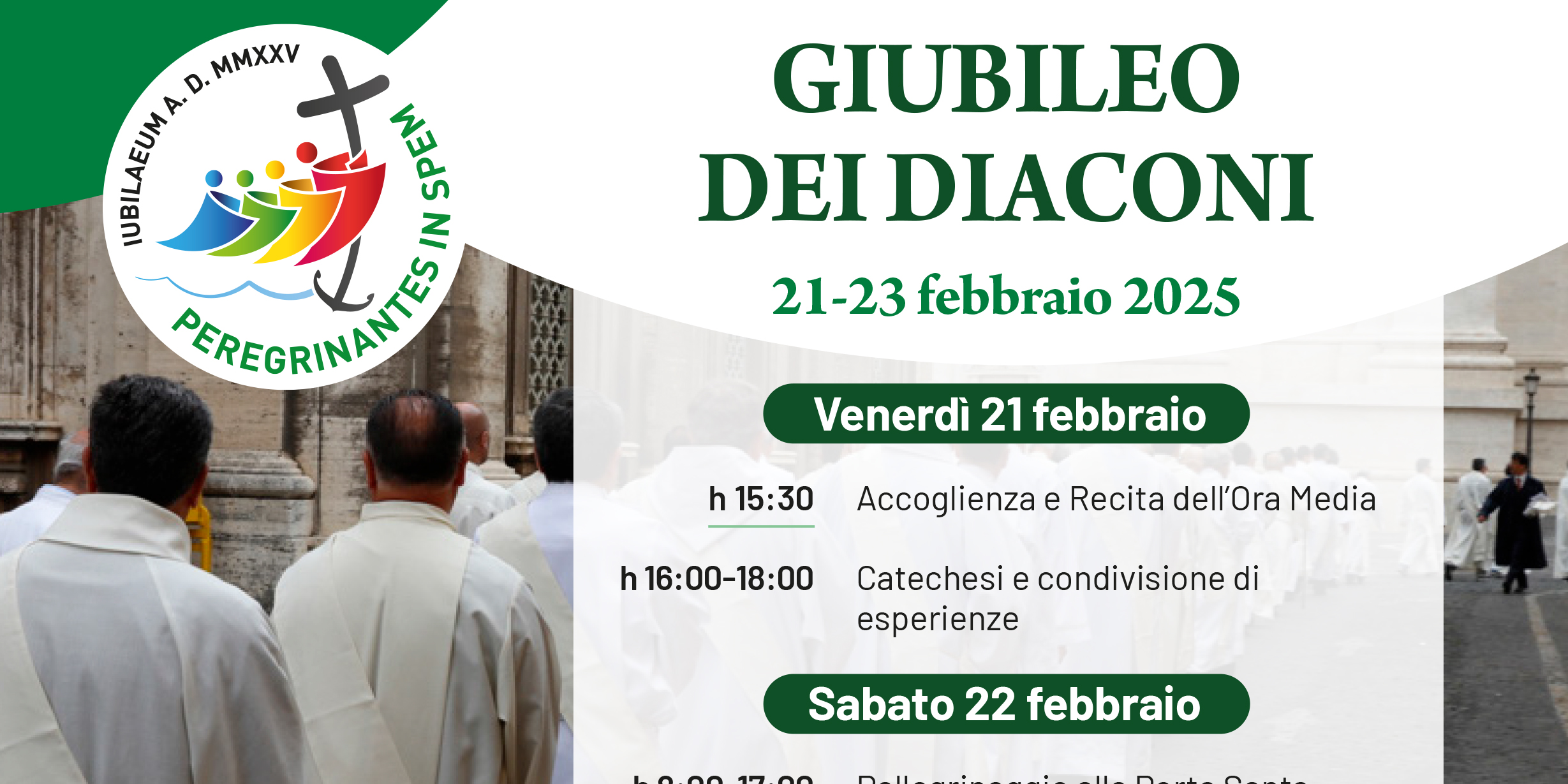 10 Settembre 2024 admindiocesi 22-23 febbraio: La Diocesi partecipa al Giubileo dei Diaconi Permanenti I Diaconi Permanenti insieme alle mogli, accompagnati dal Vescovo Lorenzo, saranno a Roma per il Pellegrinaggio Giubilare a loro dedicato. FacebookTwitterLinkedinPinterestPrintEmailWhatsapp Programma