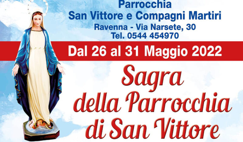 18 Marzo 2022 admindiocesi 26-31 maggio: Sagra di San Vittore Parrocchia di San Vittore Da giovedì 26 a martedì 31 maggio a San Vittore torna la tradizionale sagra parrocchiale. Info e programma sul volantino FacebookTwitterLinkedinPinterestPrintEmailWhatsapp Volantino