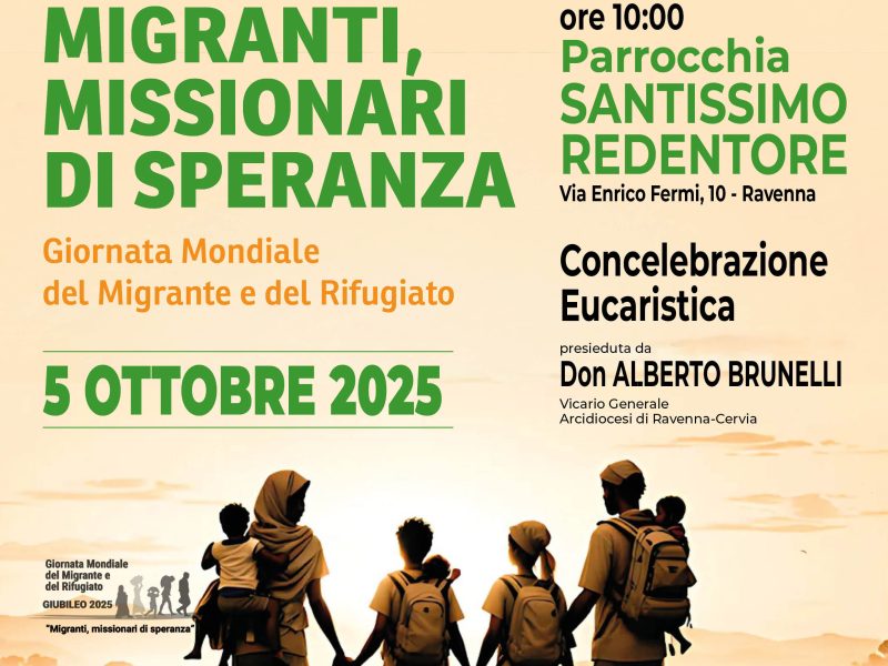 2 Ottobre 2024 admindiocesi 5 ottobre: Giornata Mondiale del Migrante e del Rifugiato Migranti, missionari di speranza ore 10 – Parrocchia del SS. Redentore via Enrico Fermi, 10 – Ravenna Concelebrazione Eucaristica presieduta da Don Alberto Brunelli, Vicario Generale dell’Arcidiocesi di Ravenna-Cervia FacebookTwitterLinkedinPinterestPrintEmailWhatsapp Messaggio di Papa Leone XIV Locandina