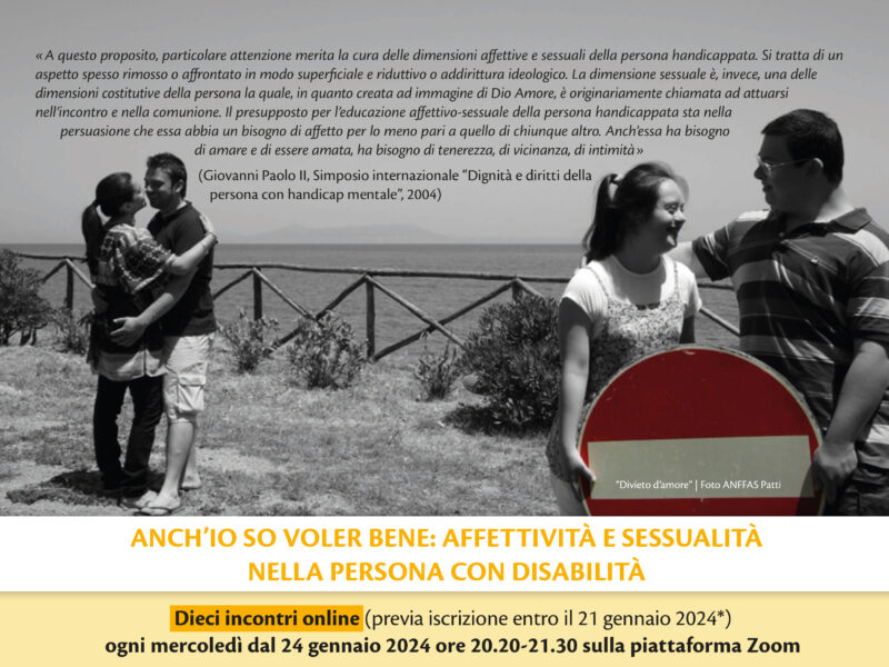 Un percorso promosso dai Servizi Nazionali della Conferenza Episcopale Italiana per la pastorale delle persone con disabilità e per la tutela dei minori. L’iniziativa è aperta ai referenti diocesani, genitori, caregiver e coloro che operano nelle strutture residenziali. Affronta, con apertura spirituale, culturale e scientifica, tematiche autenticamente e profondamente connesse con la struttura della persona che meritano a pieno titolo di essere approcciate con le più idonee competenze nella loro delicatezza, complessità e bellezza.