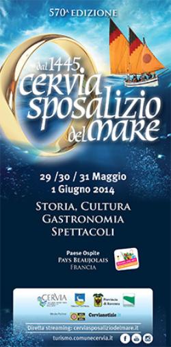 Sposalizio del Mare 2014 Dal ‘RisVeglio Duemila’ N. 21/2014 Con la 570ma edizione dello Sposalizio del Mare, Cervia rinnova l’antico rito a testimoniare il suo intimo legame con il mare. Partner della manifestazione, non una città, ma i Pays Beaujolais, la regione francese della Saone, famosa per l’omonimo e rinomato vino, conoscenza non nuova per il nostro territorio, essendo da anni … Continue reading Sposalizio del Mare 2014