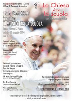 Il 10 maggio il Papa incontra la Scuola Dal ‘RisVeglio Duemila’ N. 13/2014 Pubblichiamo la lettera-invito scritta dal Consiglio Permanente della Cei e alcune frasi di un’intervista a Mons. Nunzio Galantino in vista dell’iniziativa ‘La Chiesa per la scuola’ e in particolare dell’incontro di tutto il mondo della scuola con Papa Francesco, sabato 10 maggio in Piazza San Pietro. L’annuncio del … Continue reading Il 10 maggio il Papa incontra la Scuola