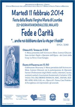 XXII Giornata Mondiale del Malato: Messaggio del Santo Padre Francesco Cari fratelli e sorelle, In occasione della XXII Giornata Mondiale del Malato, che quest’anno ha come tema Fede e carità: ‘Anche noi dobbiamo dare la vita per i fratelli’ (1Gv 3,16), mi rivolgo in modo particolare alle persone ammalate e a tutti coloro che prestano loro assistenza e cura. La Chiesa riconosce in … Continue reading XXII Giornata Mondiale del Malato: Messaggio del Santo Padre Francesco