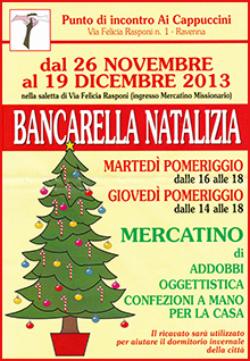 Bancarella natalizia pro dormitorio Dal ‘RisVeglio Duemila’ N. 44/2013 E’ aperta a Ravenna, in via Felicia Rasponi (ingresso mercatino missionario) una ricca bancarella di addobbi, luminarie, oggetti e confezioni a mano. Il tutto di ispirazione natalizia e ad ottimo prezzo. E’ stata allestita dai volontari del Punto di incontro Ai Cappuccini per dare un contributo al funzionamento del dormitorio del ‘Piano freddo’ … Continue reading Bancarella natalizia pro dormitorio