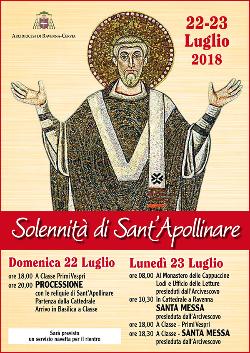Calendario Pastorale: Luglio 2018 Domenica 22 luglio: Celebrazioni in onore di Sant’Apollinare, patrono della diocesi di Ravenna-Cervia e della Regione Emilia Romagna. Ore 20.00 Pellegrinaggio Diocesano a piedi dalla cattedrale a Sant’Apollinare in Classe Lunedì 23 luglio, Sant’Apollinare: Ore 10.30: Santa Messa presieduta dall’Arcivescovo in cattedrale. Ore 18.00: Vespri in Sant’Apollinare in Classe. Ore 18.30: Santa Messa presieduta dall’Arcivescovo in Sant’Apollinare in Classe Sabato … Continue reading Calendario Pastorale: Luglio 2018