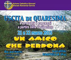 AC Giovani: Uscita di Quaresima Nelle giornate del 21 e 22 marzo, a Fantella, in provincia di Forlì, avrà luogo un ritiro spirituale indirizzato ai giovani delle scuole superiori. Il ritiro avrà come filo conduttore il tema della “Responsabilità”, passando attraverso l’importanza delle scelte, il senso del peccato, la misericordia di Dio, la bellezza del perdono. Oltre alla parte spirituale, che avrà il … Continue reading AC Giovani: Uscita di Quaresima